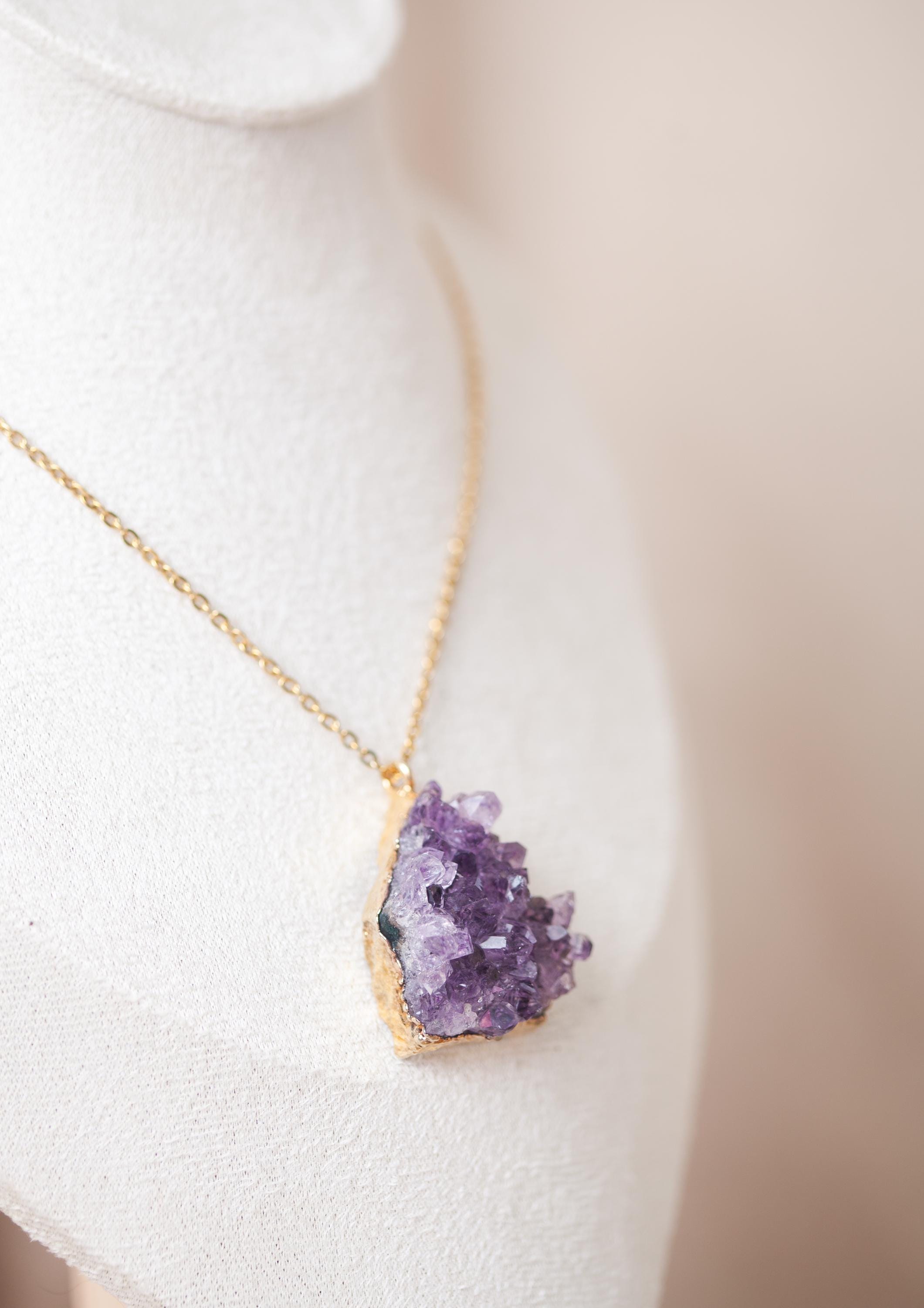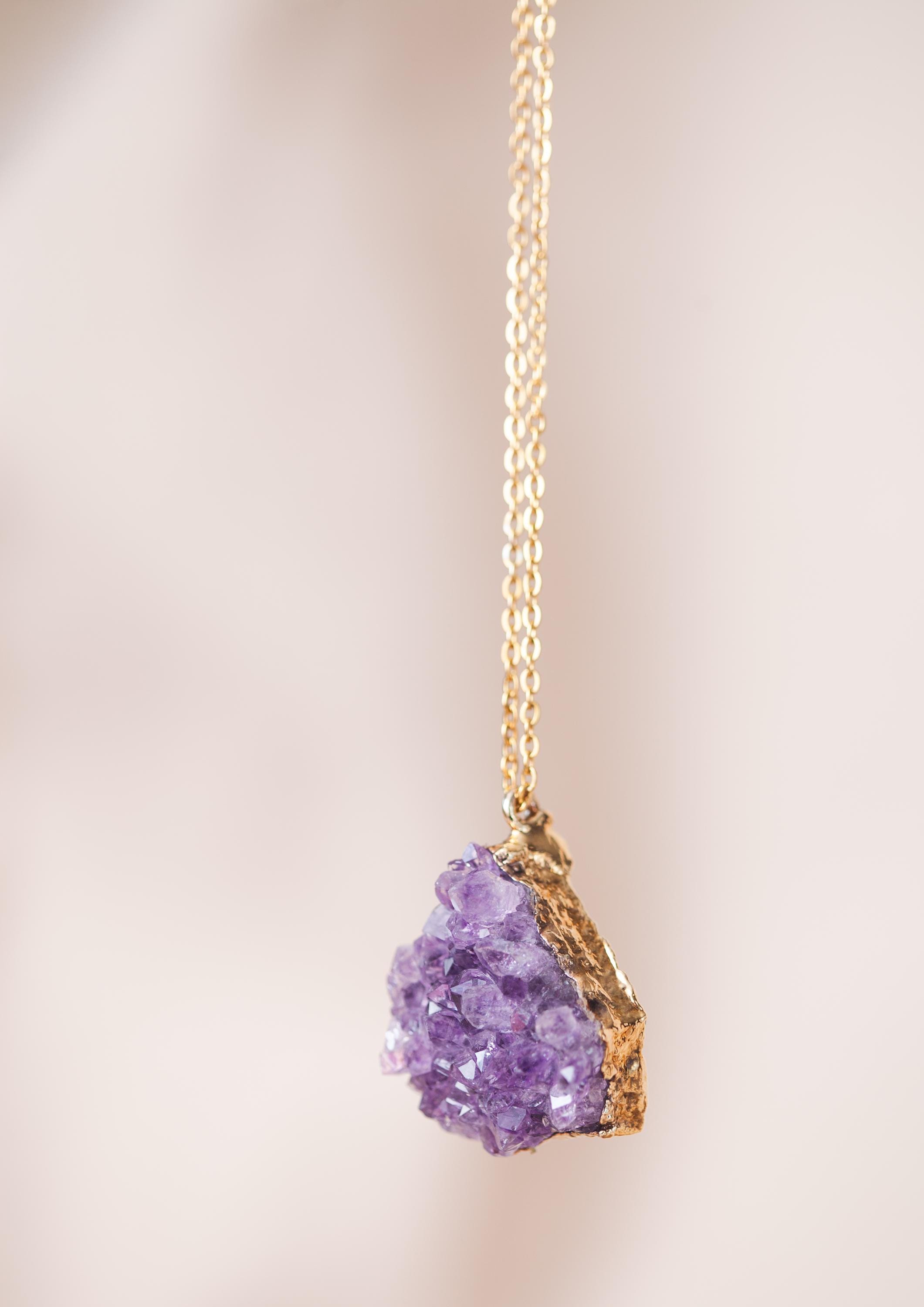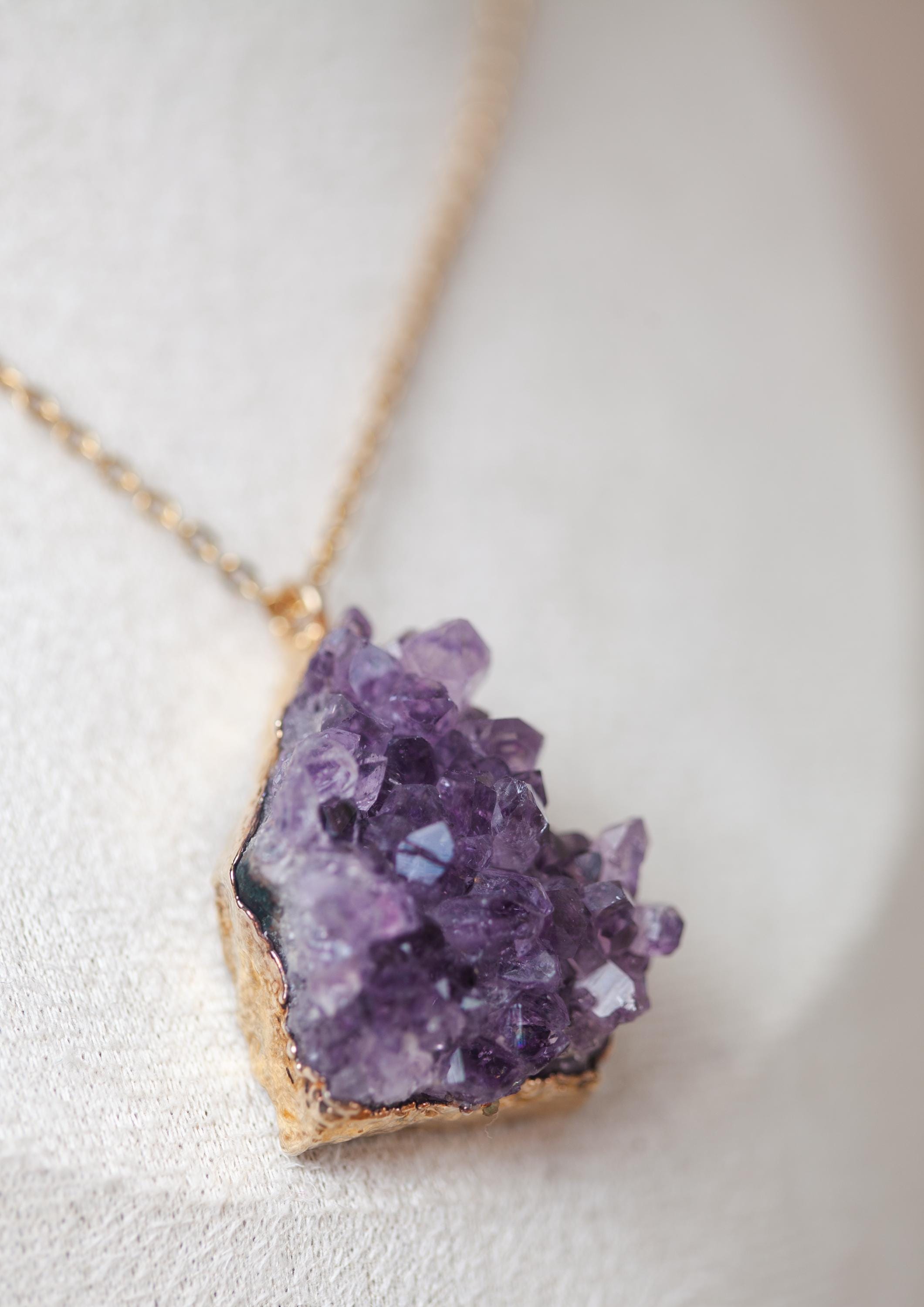 Amethyst Druse Necklace - Natural Stone Jewelry - Unique Gift - Amethyst Stone - Boho Inspiration