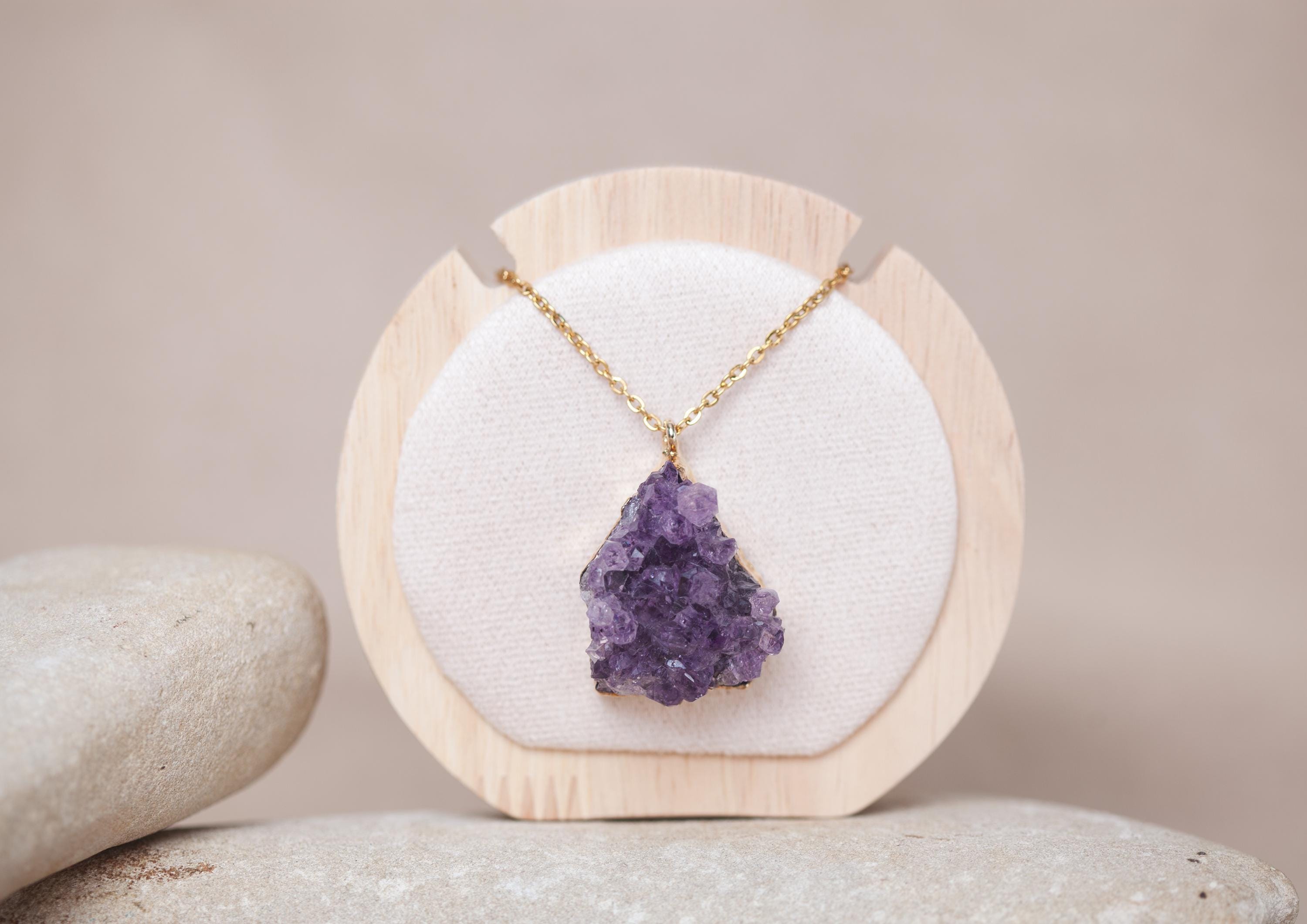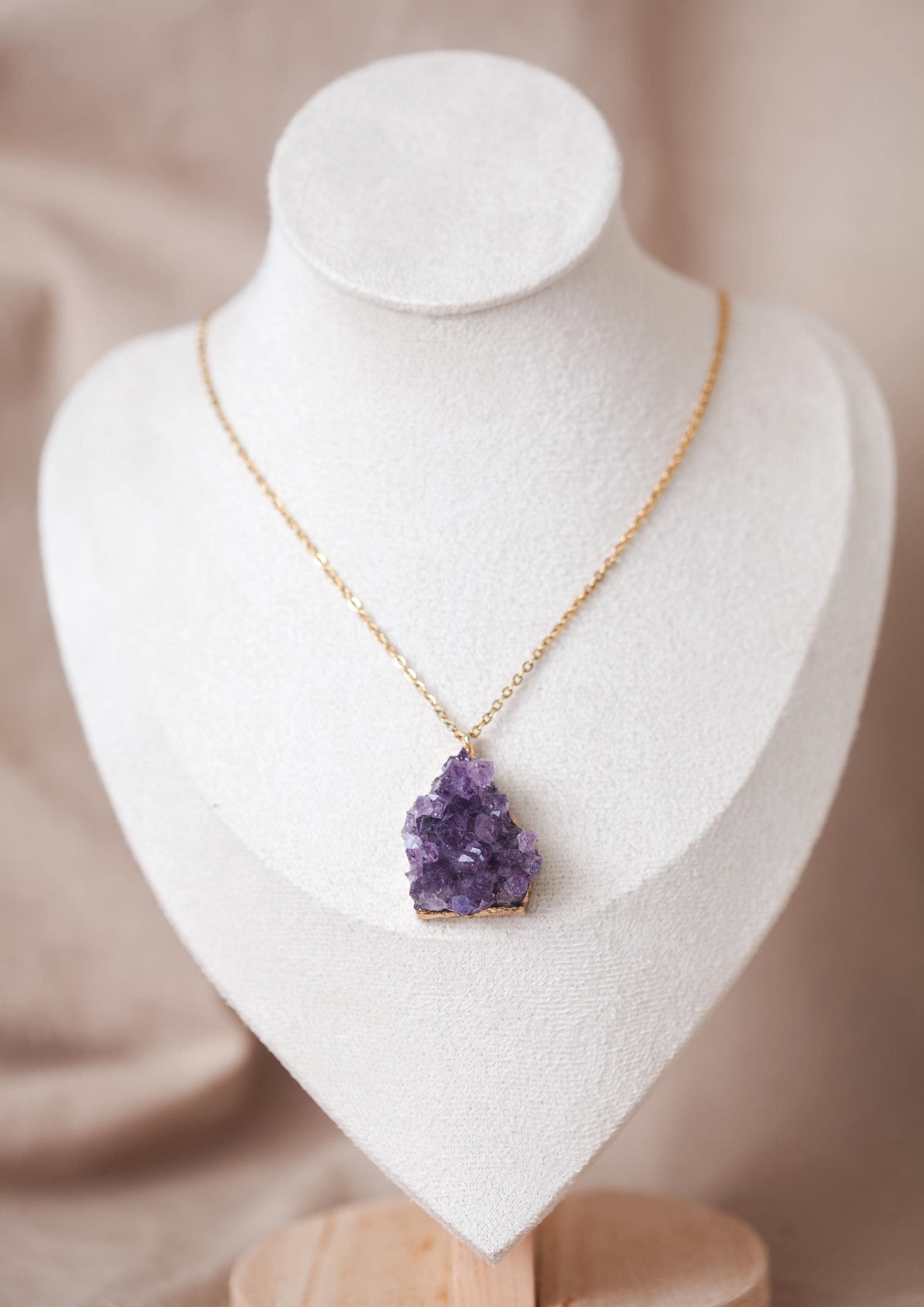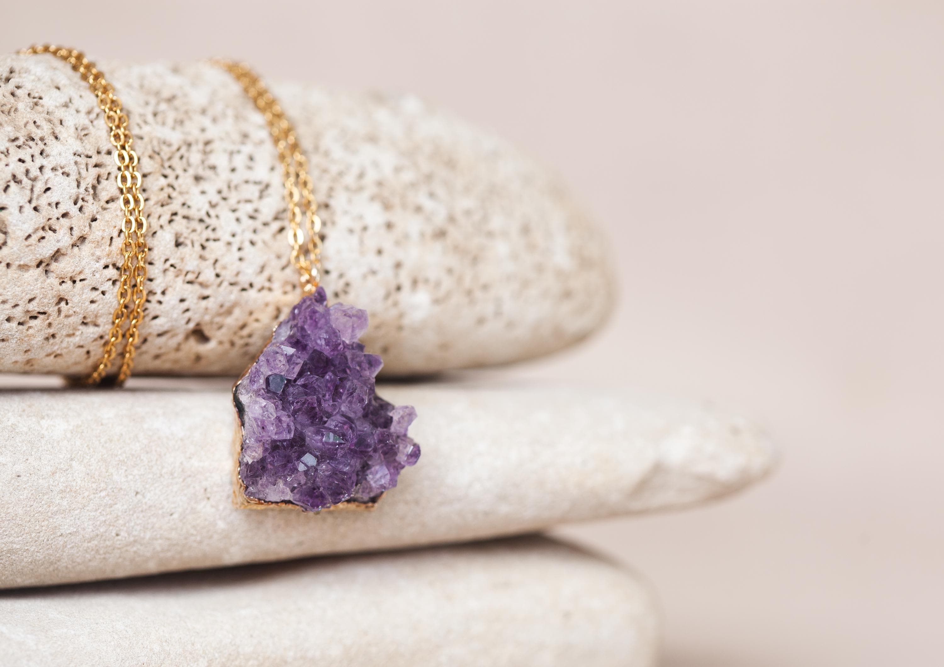 Amethyst Druse Necklace - Natural Stone Jewelry - Unique Gift - Amethyst Stone - Boho Inspiration